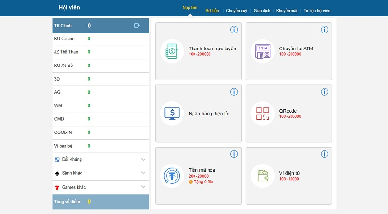 Số tiền nạp: Mỗi tài khoản được nạp 5.000.000 VNĐ để tham gia chơi và đáp ứng các điều kiện rút tiền.